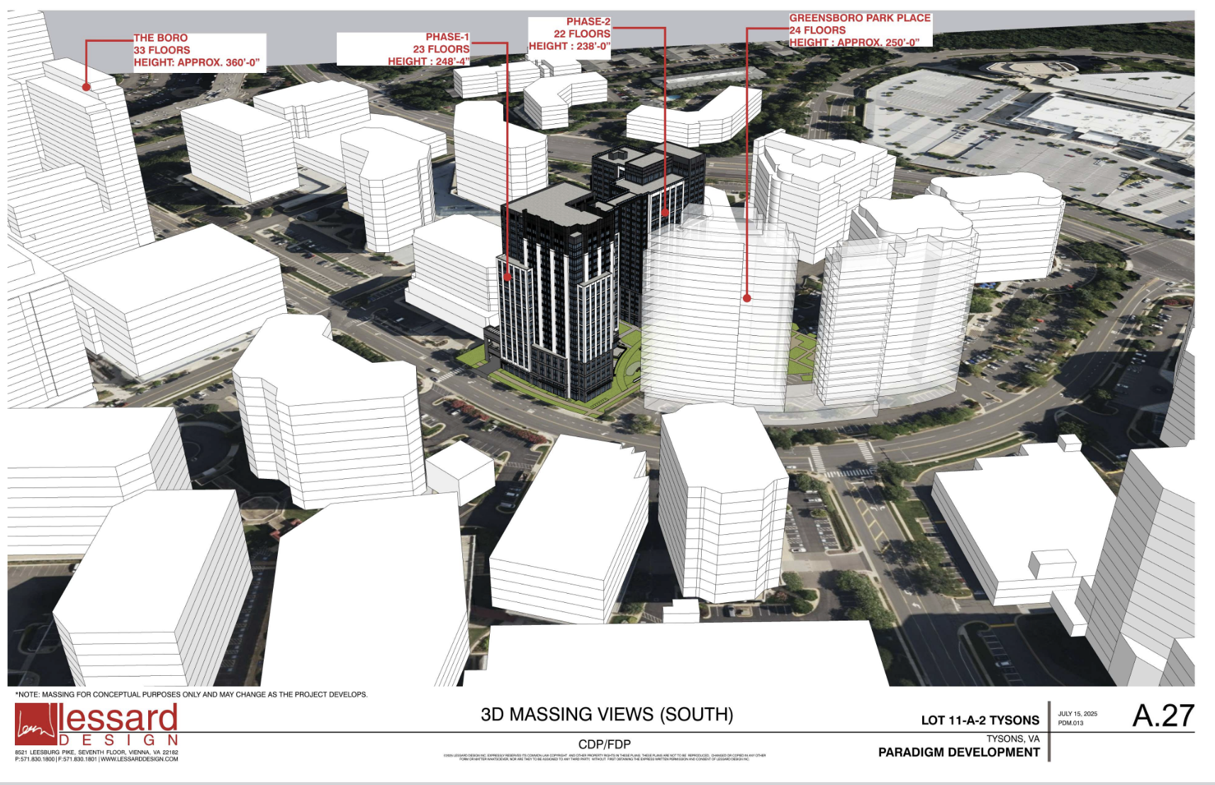 At its December 3rd Board meeting, MCA approved a letter in support of the application for Paradigm Companies' redevelopment of the two-story building at 8250 Greensboro Drive in Tysons, the current home of a Onelife Fitness health club. Paradigm seeks to develop the site, which is adjacent to an approved future development known as Greensboro Park Place, a close walk from Tysons Galleria, and across Greensboro Drive from the Boro mixed-use development, into two residential high-rise towers, along with a playground and dog park.