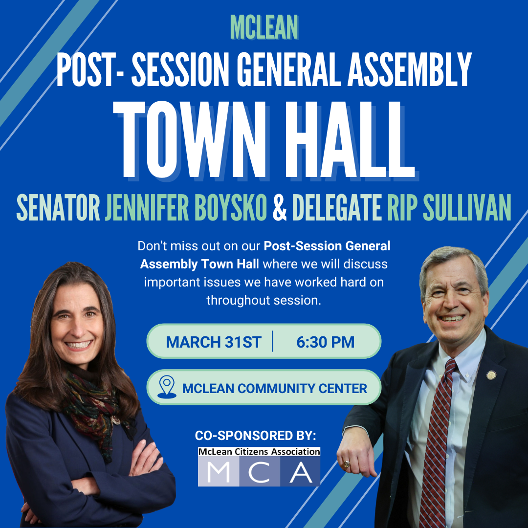 MCA is hosting a post-legislative session with State Senator Jennifer Boysko and State Delegate Rip Sullivan on March 31, 2026 from 6:30-8:00 pm at the MCC, where the legislators will answer questions and give us current information (see flyer below).